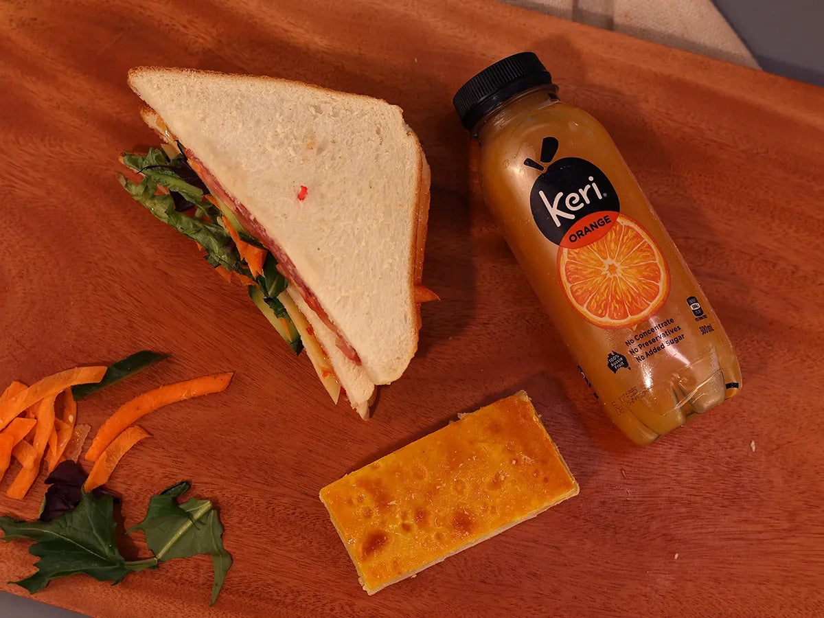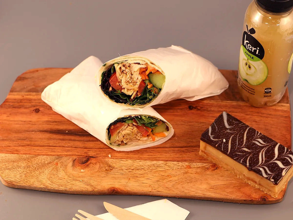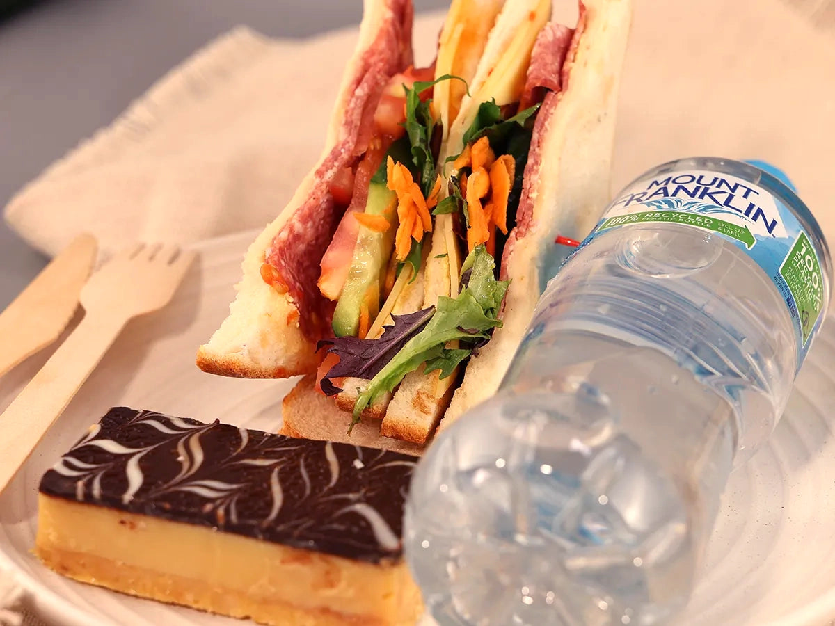 Savour our Deluxe Deal 05, featuring a gourmet sandwich with fresh, savoury fillings, one flavorful slice of your choice, and a refreshing can of Coke or water.
