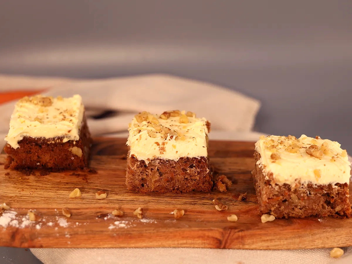 Savor the timeless charm of our Traditional Carrot Cake, a moist, spice-kissed delight bursting with sweet, earthy carrots and warm notes of cinnamon and nutmeg. Each tender slice is crowned with a luscious cream cheese icing, velvety and tangy, with wavy lines to perfection, and finished with a generous scattering of crunchy, toasted, crushed walnuts.